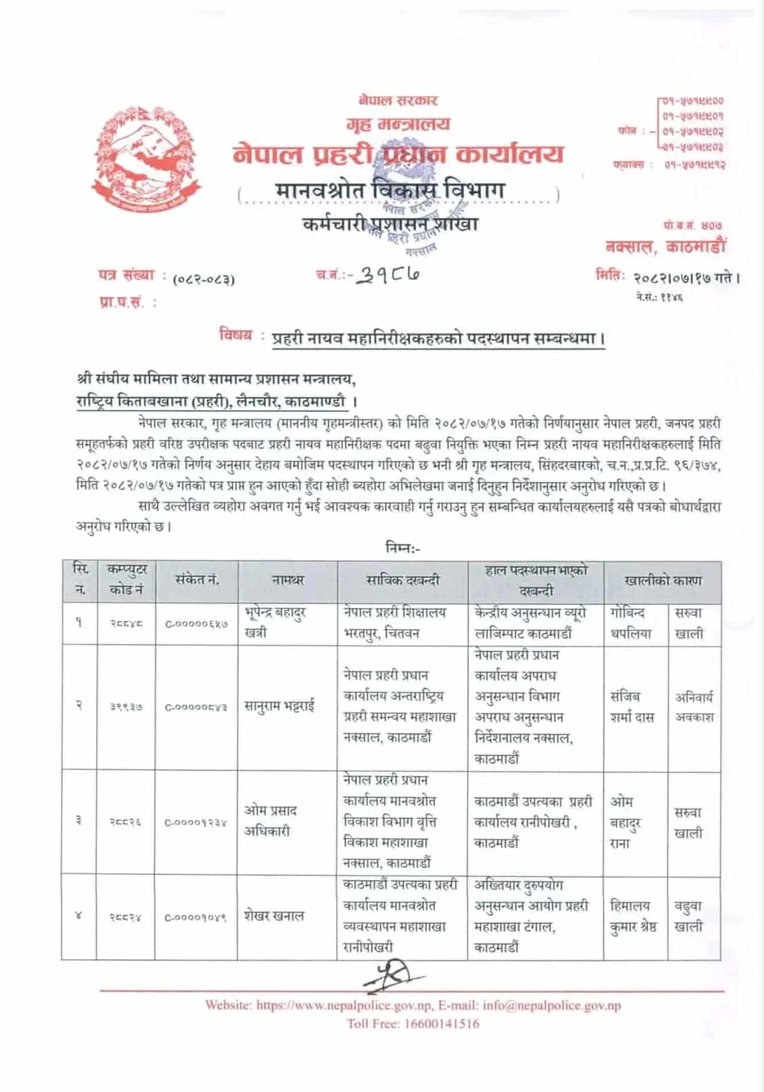 - नेपाल प्रहरीका ५ जना डीआईजीको पदस्थापन, कसको कहाँ ?