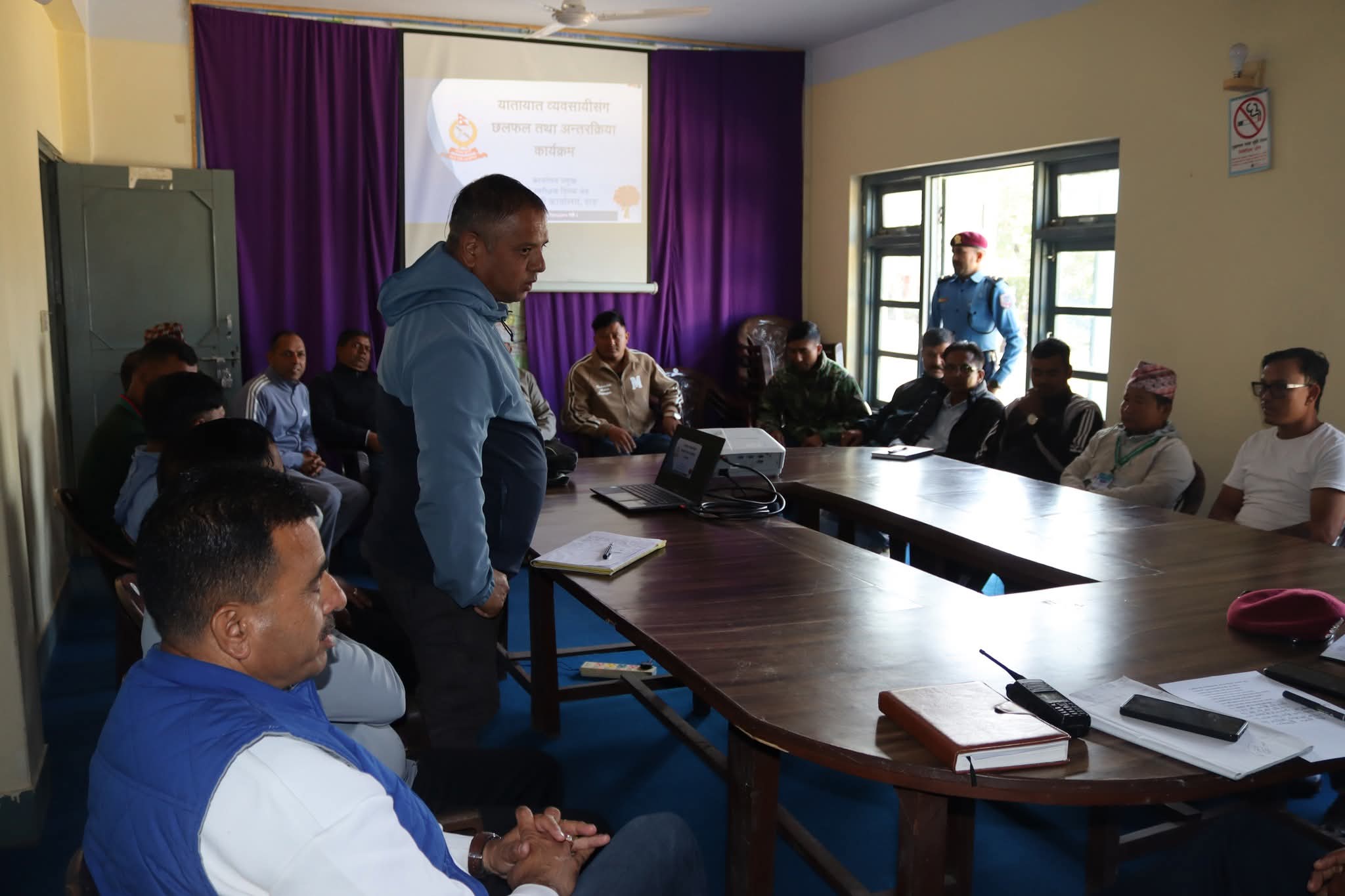 दाङ प्रहरी  प्रमुख एसपी दीपक श्रेष्ठको उपस्थितिमा भएको कार्यक्रममा यातायात व्यवसायी, चालक तथा सरोकारवालाको सक्रिय सहभागिता थियो। कार्यक्रममा सवारी दुर्घटना न्यूनीकरण, ट्राफिक नियमको प्रभावकारी पालना, लागुऔषध नियन्त्रण र प्रहरी–यातायात व्यवसायीबीचको समन्वय तथा सहकार्यलाई कसरी थप सुदृढ बनाउन सकिन्छ भन्ने विषयमा विस्तृत छलफल गरिएको थियो।