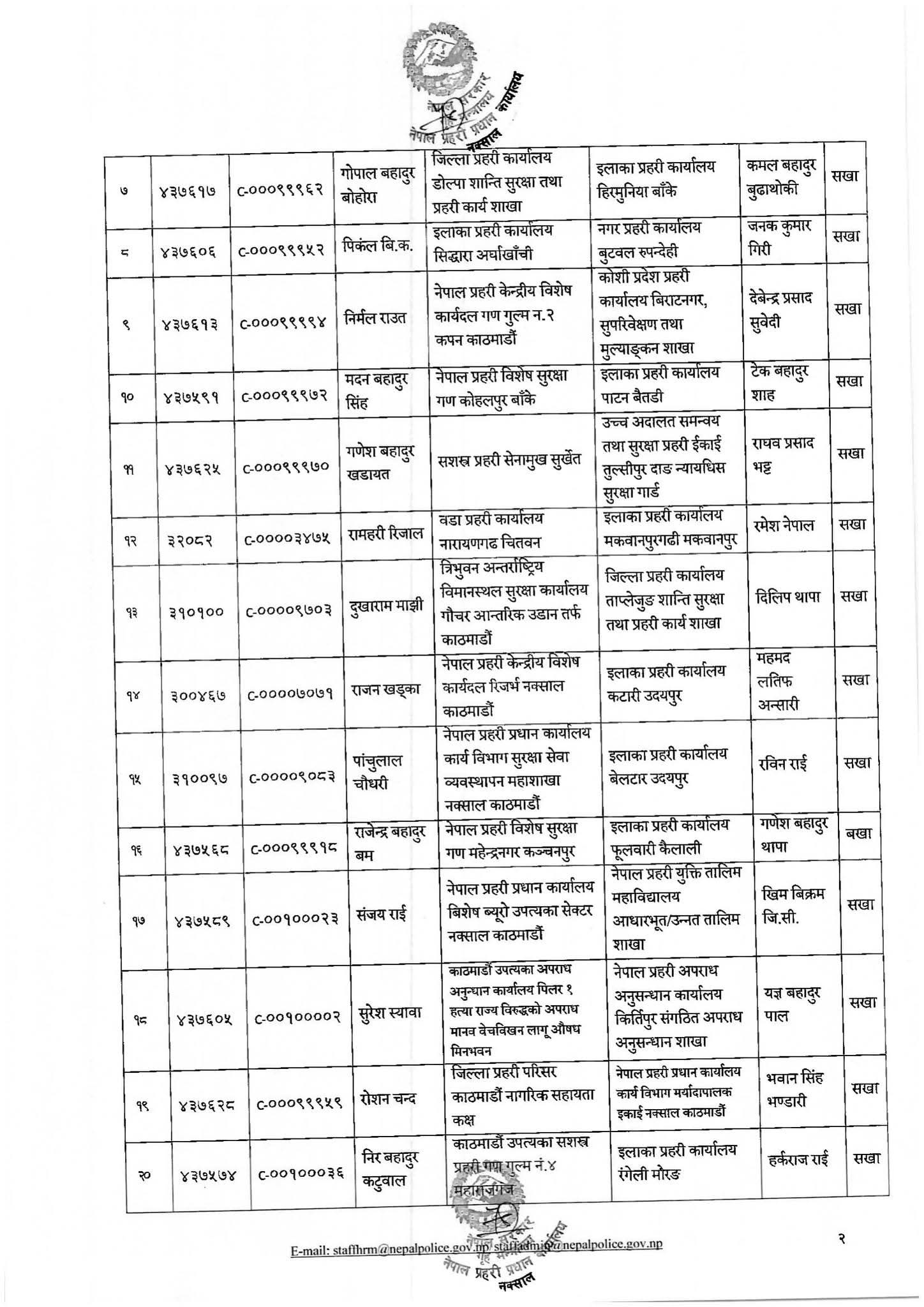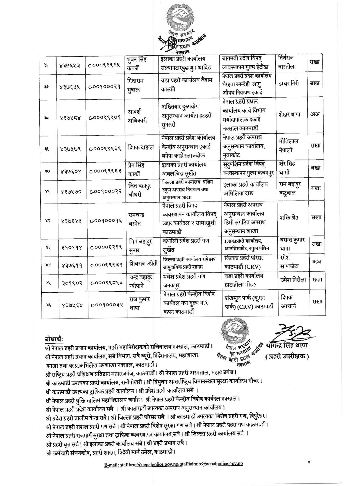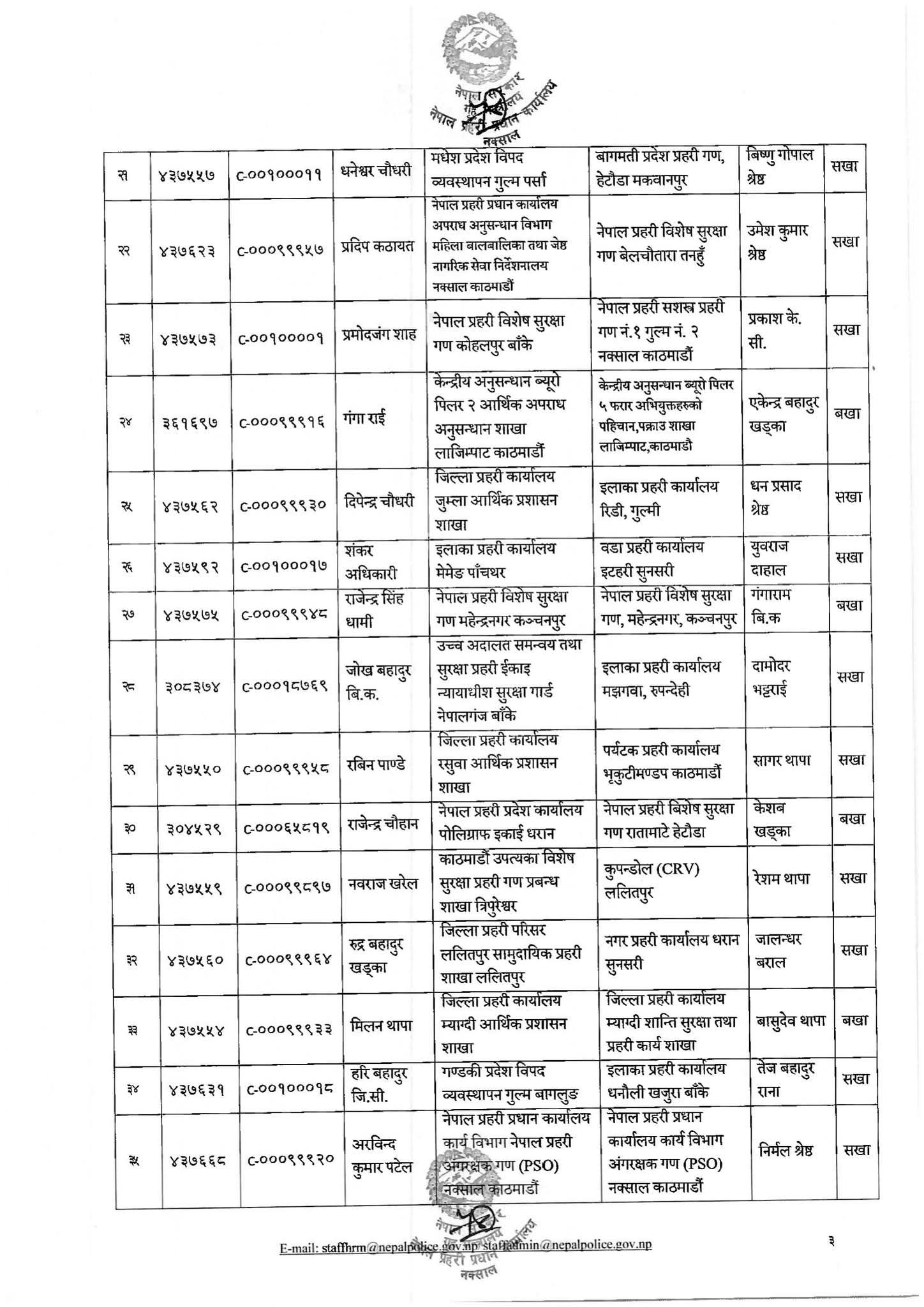 - नेपाल प्रहरीका २९३ वरिष्ठ सईको सरुवा (सरुवा सूचीसहित)