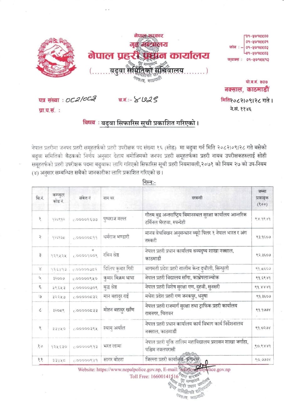- नेपाल प्रहरीका १० एसएसपीले लगाए दर्ज्यानी चिन्ह
