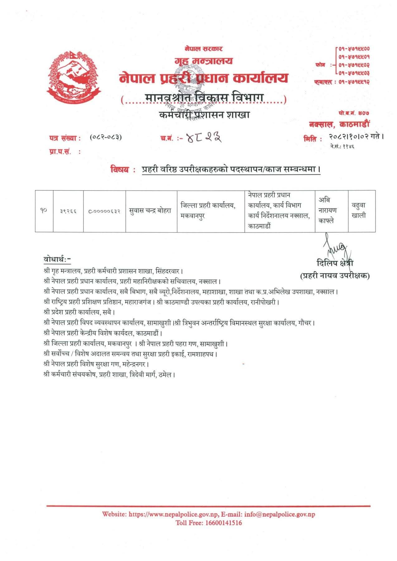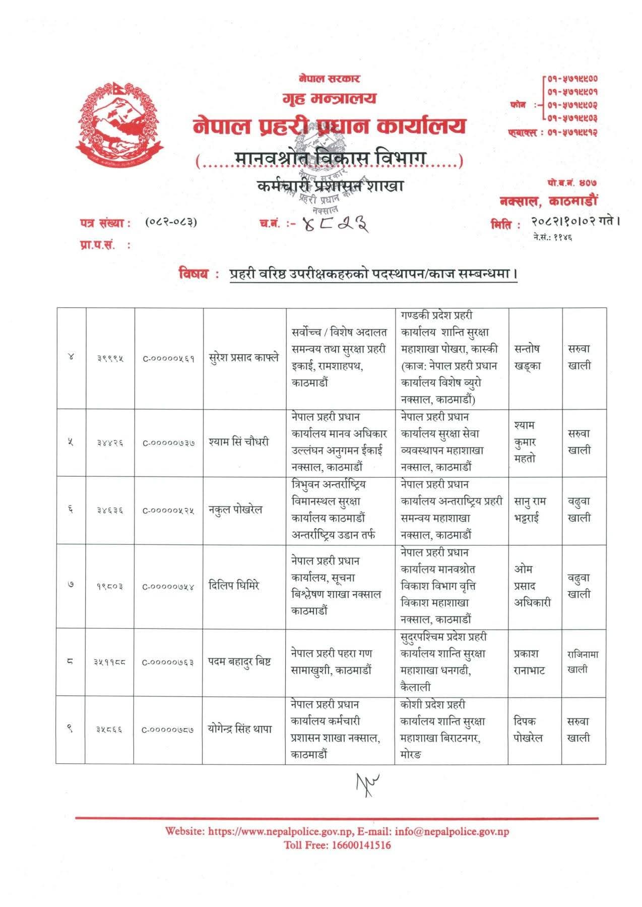 - बढुवा भएका नेपाल प्रहरीका १० एसएसपीको पदस्थापन (पदस्थापन सूचीसहित)