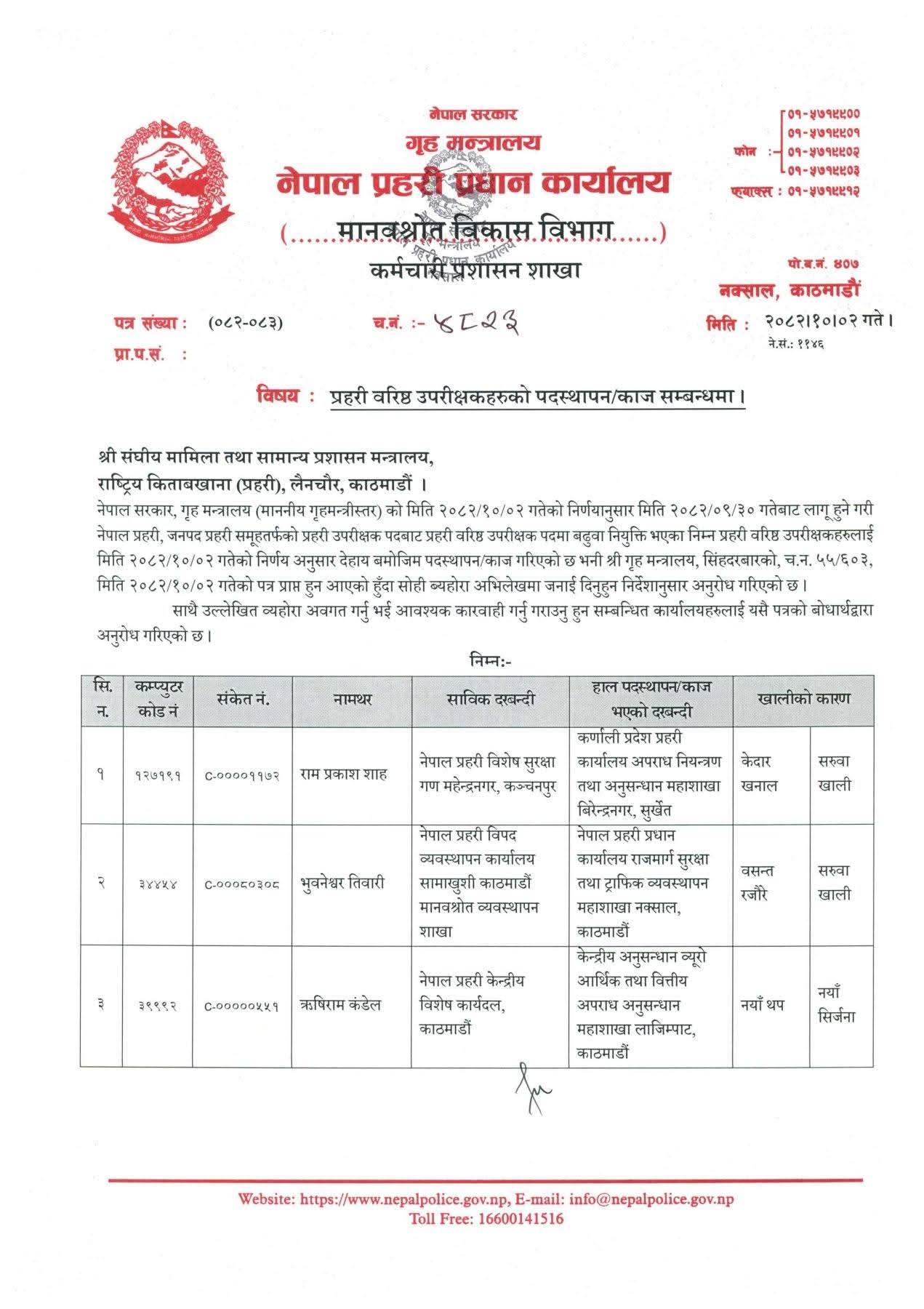 - प्रहरीका ११ एसएसपीको सरुवा,त्रिभुवन अन्तर्राष्ट्रिय विमानस्थलमा रजौरे,अपराध अनुसन्धानमा सन्तोष(कसको कहाँ)