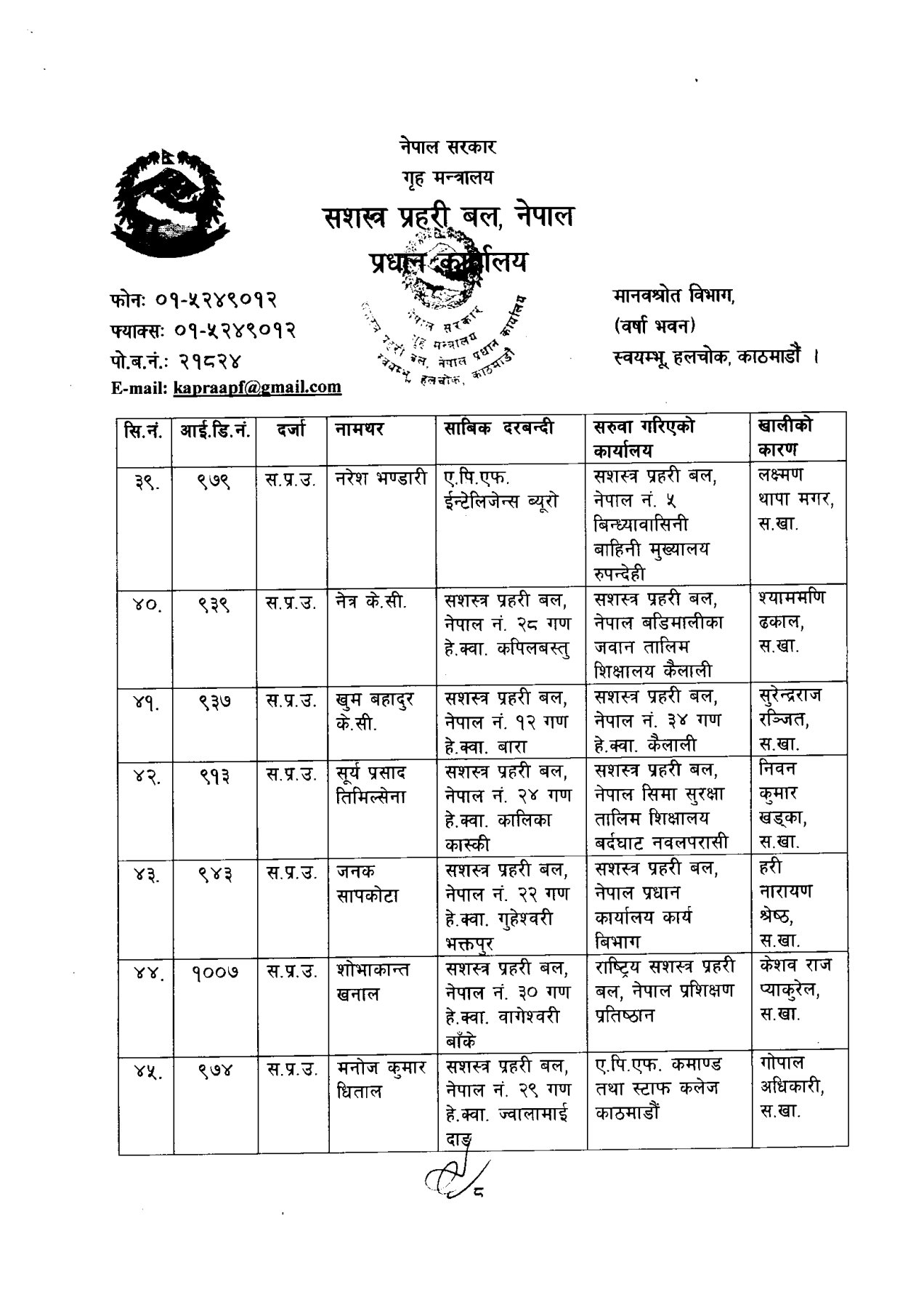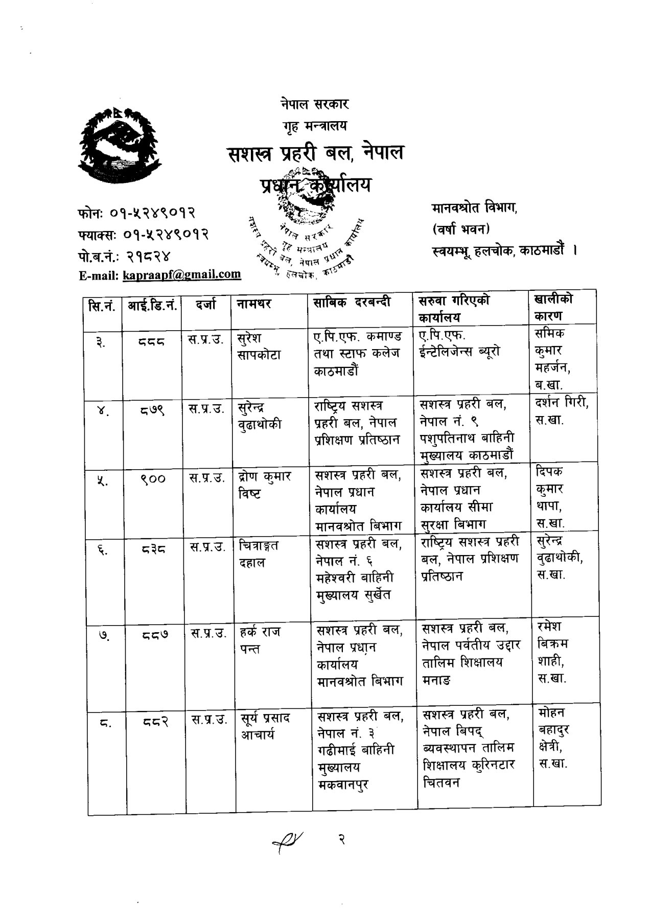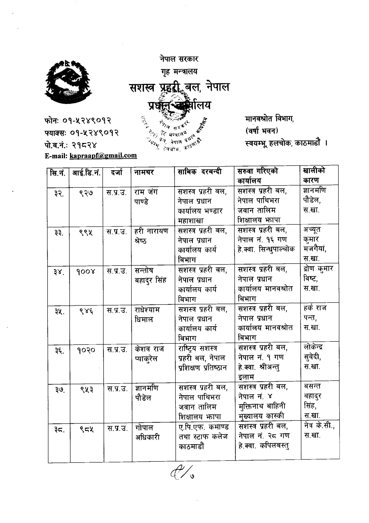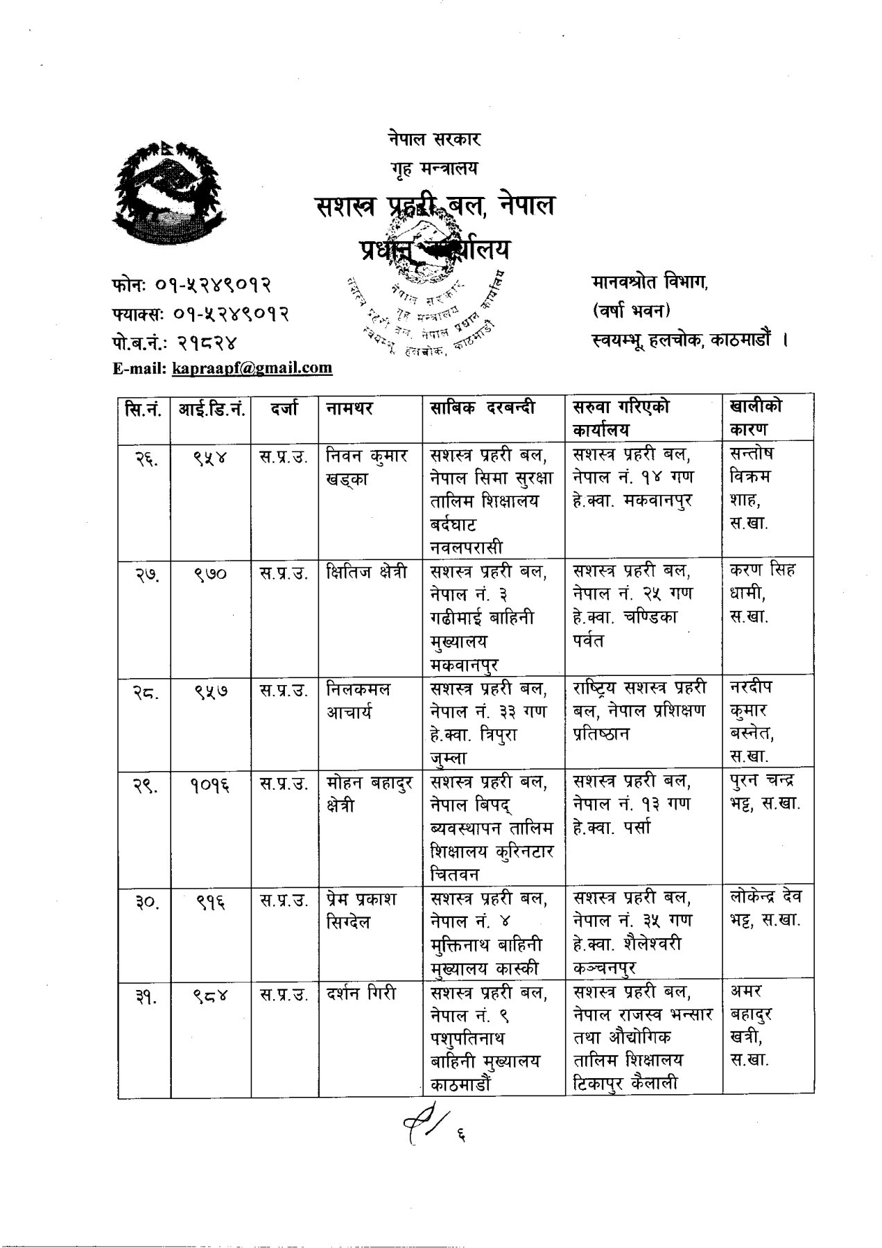सशस्त्र प्रहरी बलका ६ डीआईजीको सरुवा (कसको कहाँ?)