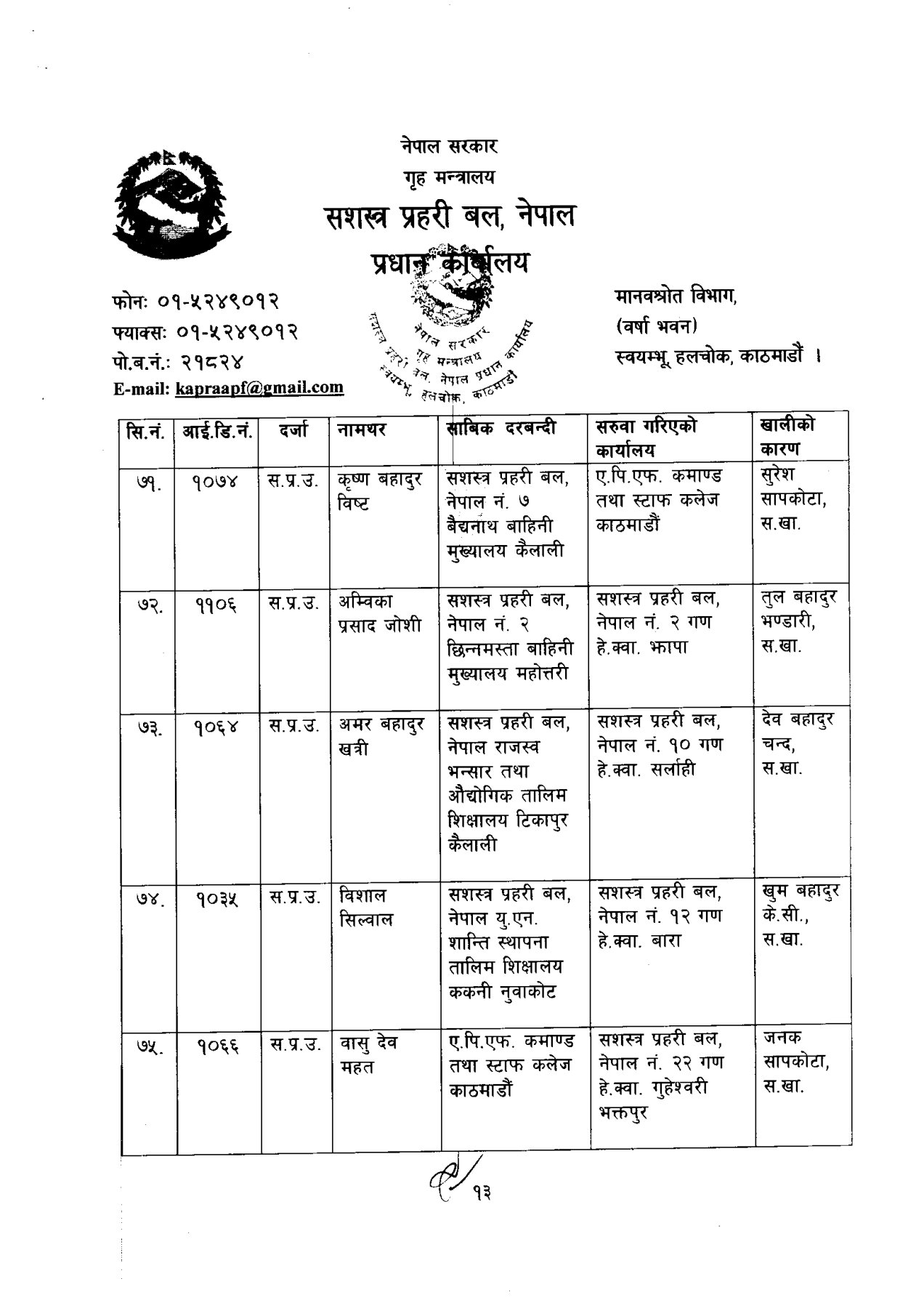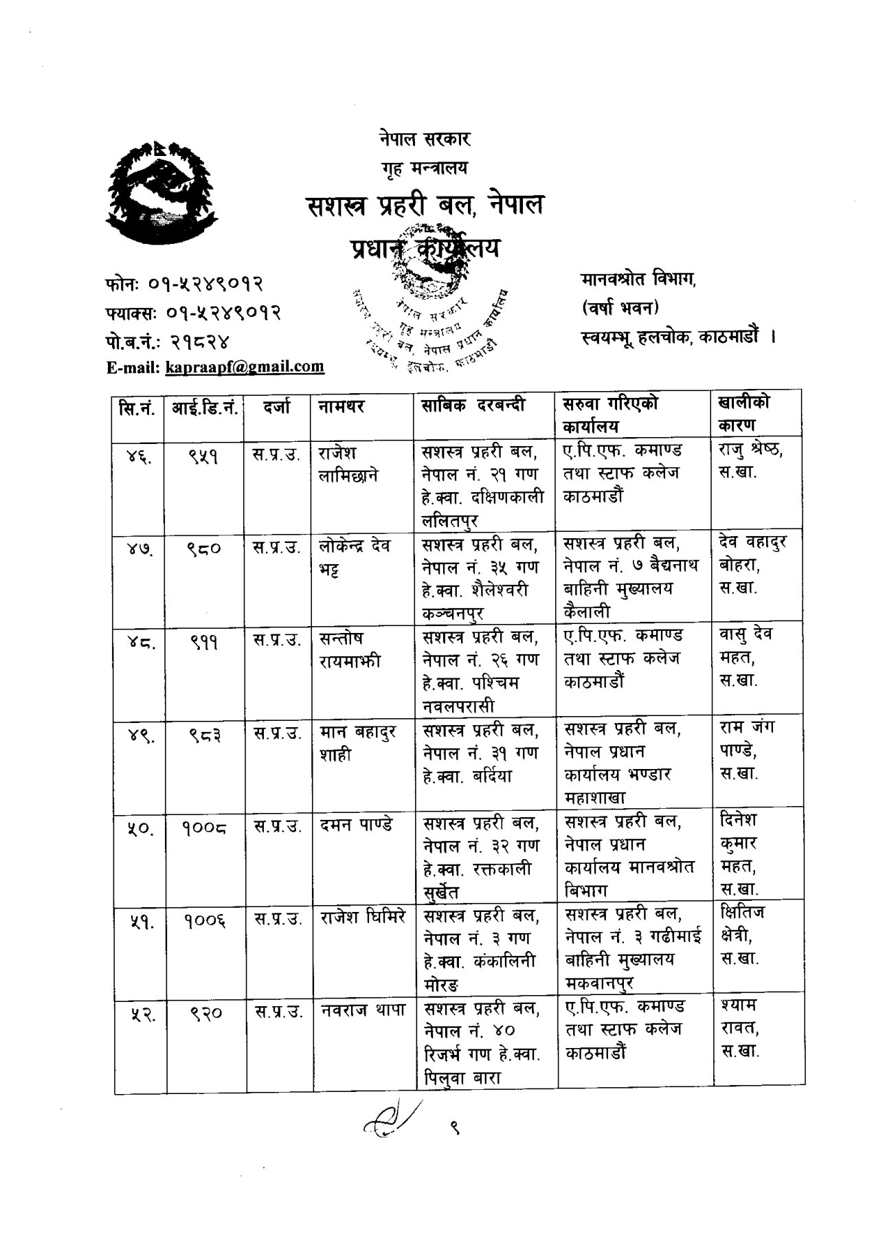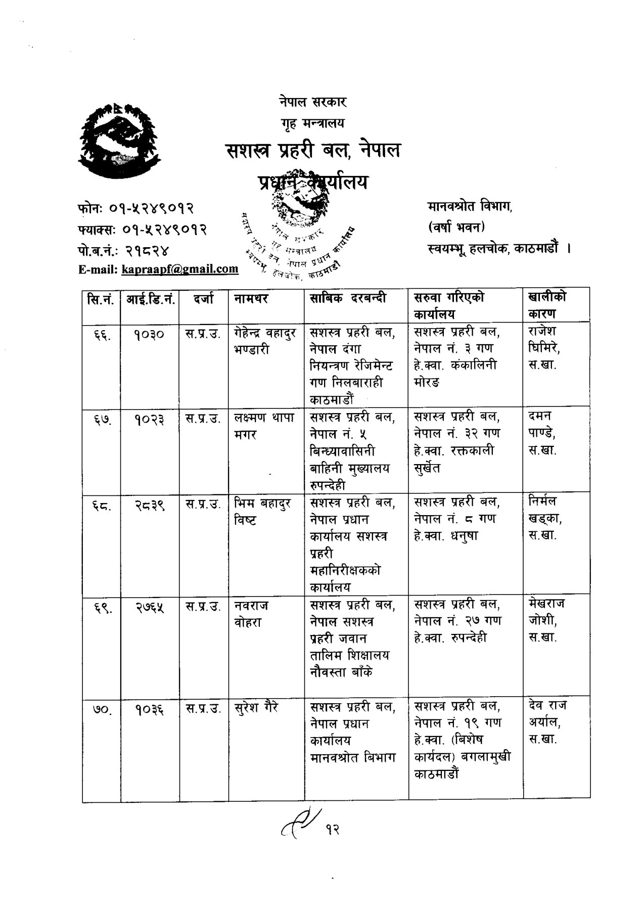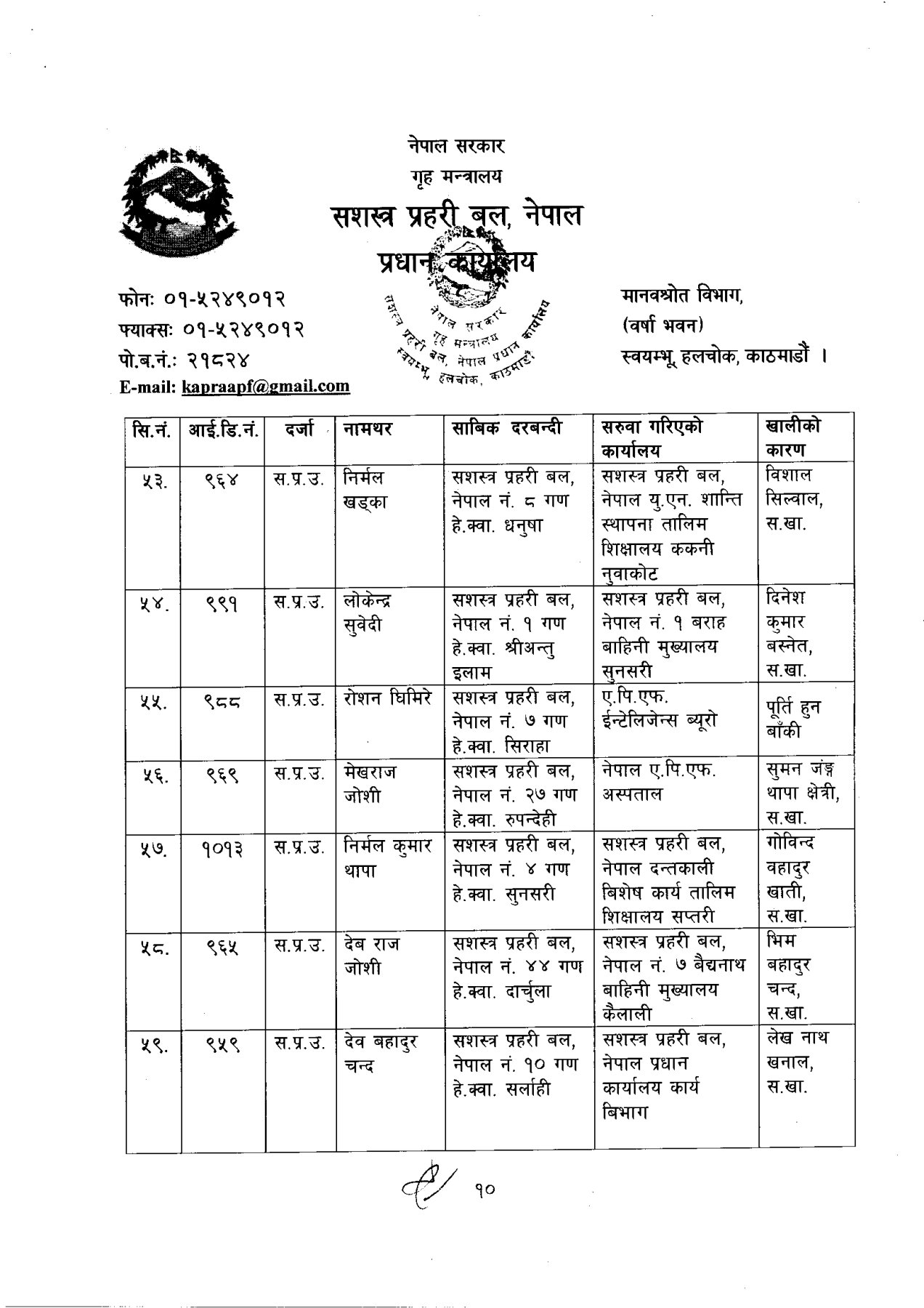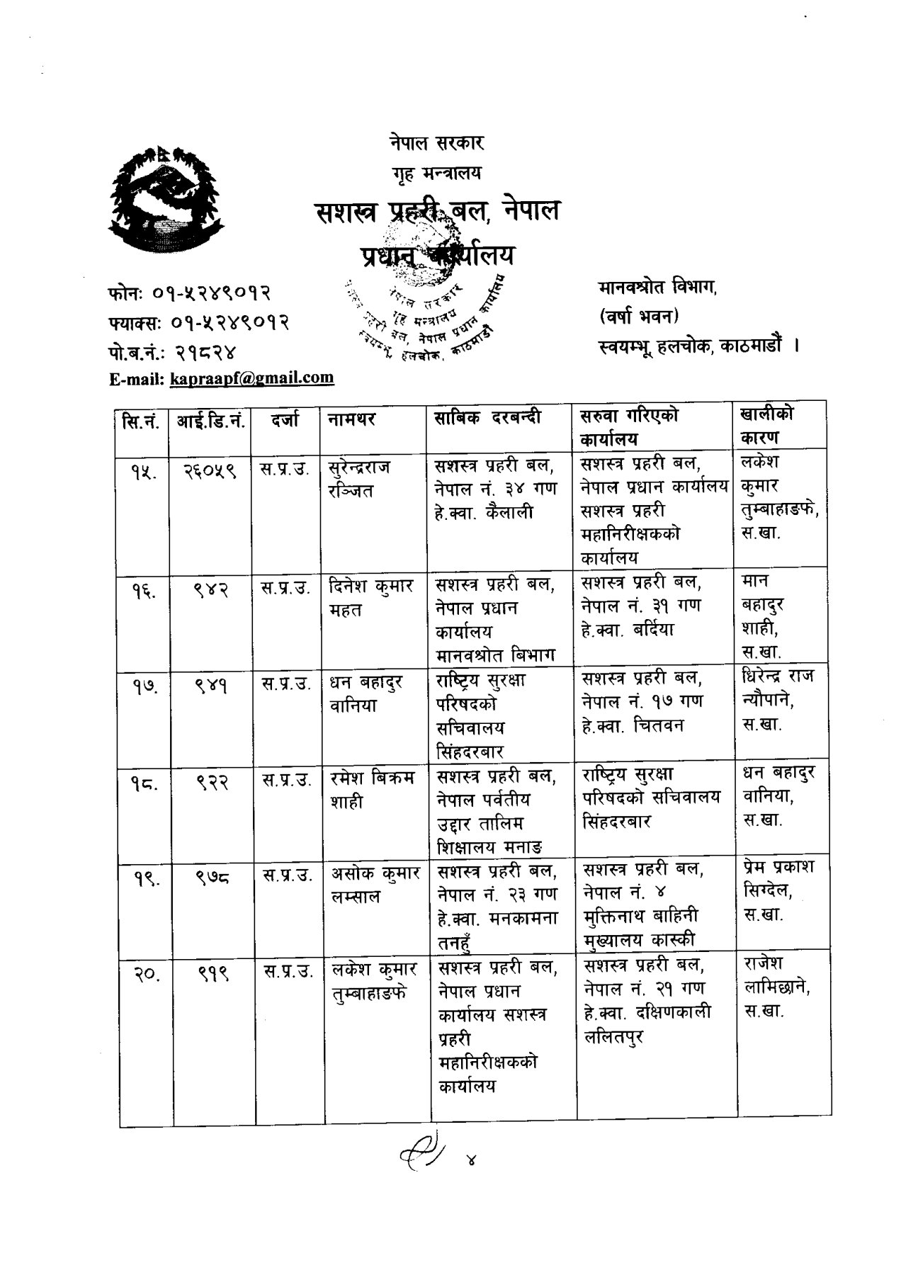 सशस्त्र प्रहरी बलका ६ डीआईजीको सरुवा (कसको कहाँ?)