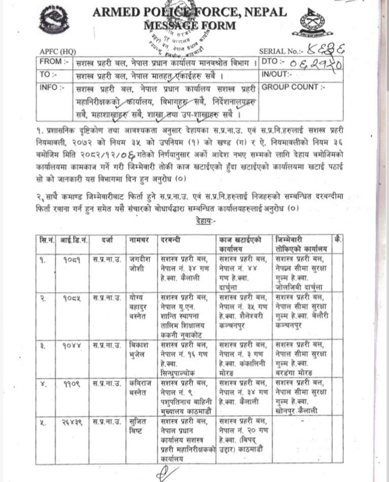 - सशस्त्र प्रहरीका १३ डीएसपीले पाए गुल्मको कमाण्ड, बाँकेको नरैनापुरमा डीएसपी बिष्ट