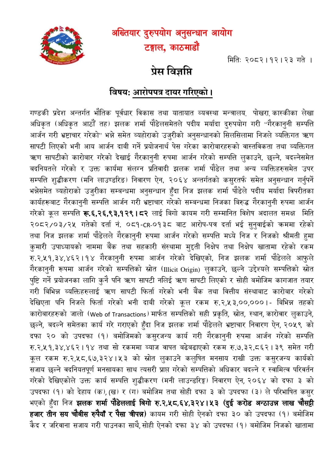 नगरपालिकामा घुस प्रकरण: नगर प्रमुखसहित दुईविरुद्ध भ्रष्टाचार मुद्दा दायर